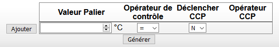 Un deuxième palier est défini (4°C), on autorise les valeurs strictement inférieure (<), pour ce deuxième palier un CCP est déclenché lorsque la valeur sera supérieure ou égale (>=)