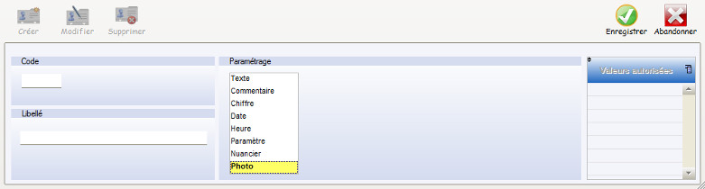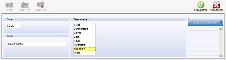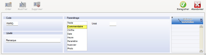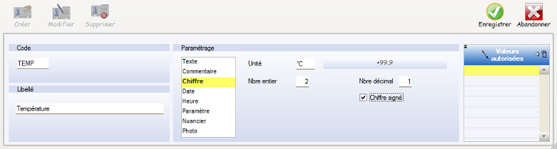 Dans cette partie il est possible de saisir les paliers de valeurs autorisées et critiques.