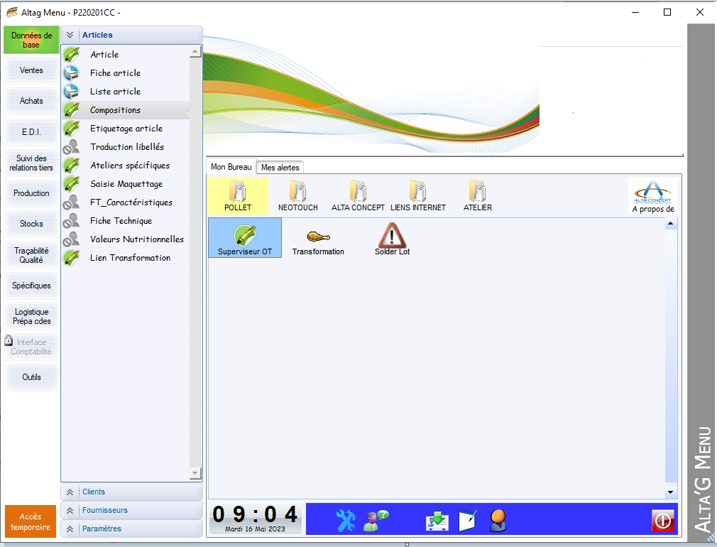 Installer le Raccourci du Programme « Transformation Interne » sur le Bureau du Menu AltaG.
