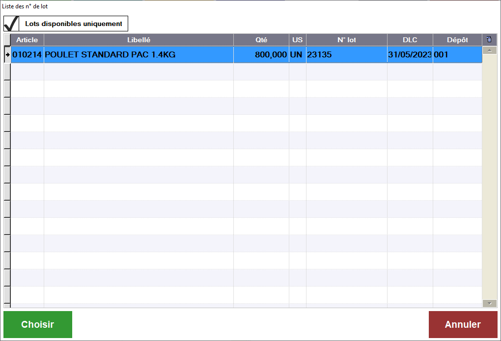 La DLC s’affichera donc automatiquement selon le Numéro de Lot sélectionné.