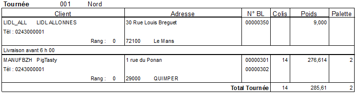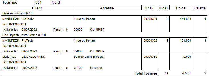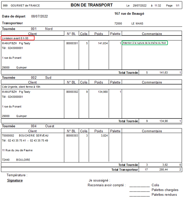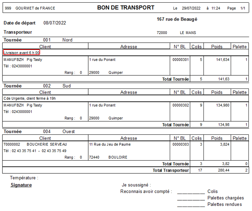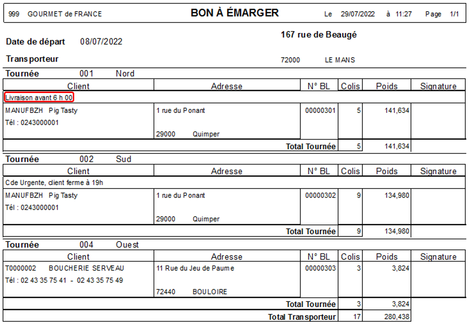 Édition d’un document à destination du transporteur, reprenant les commandes à livrer pour un jour de départ