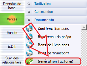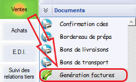La génération de factures est possible quand la génération des bons de livraisons est terminée ou en document direct.