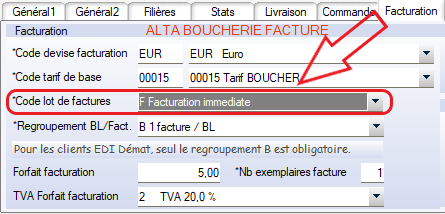 Le paramétrage du lot de facture est enregistré dans la fiche du client facturé.