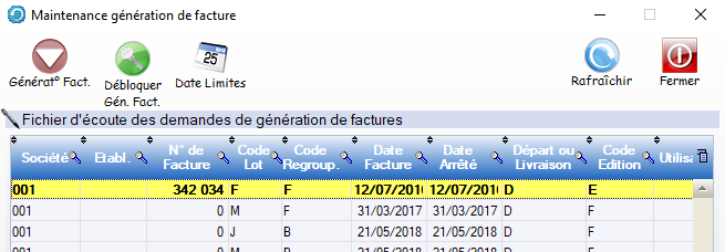 A partir de la fenêtre Édition des factures, les lots générés non édités s’affichent.