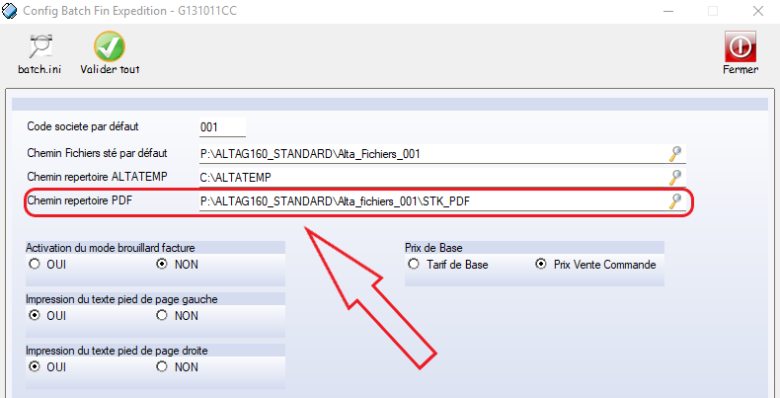 L’emplacement de stockage est paramétré dans le batch_ altagro_bledition.