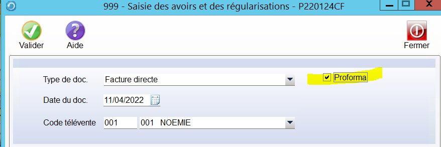 Le process est le même que pour un document reel , il suffit de cocher « pro forma »