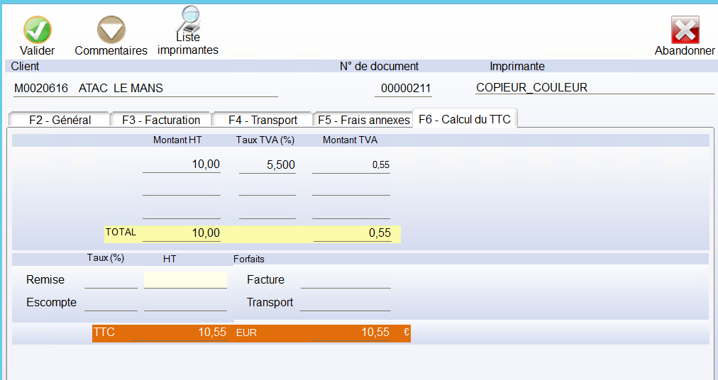 Important , un onglet « TTC » permet de vérifier le montant de l avoir avant la validation définitive et irreversible