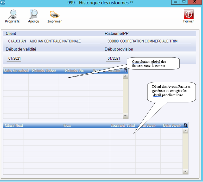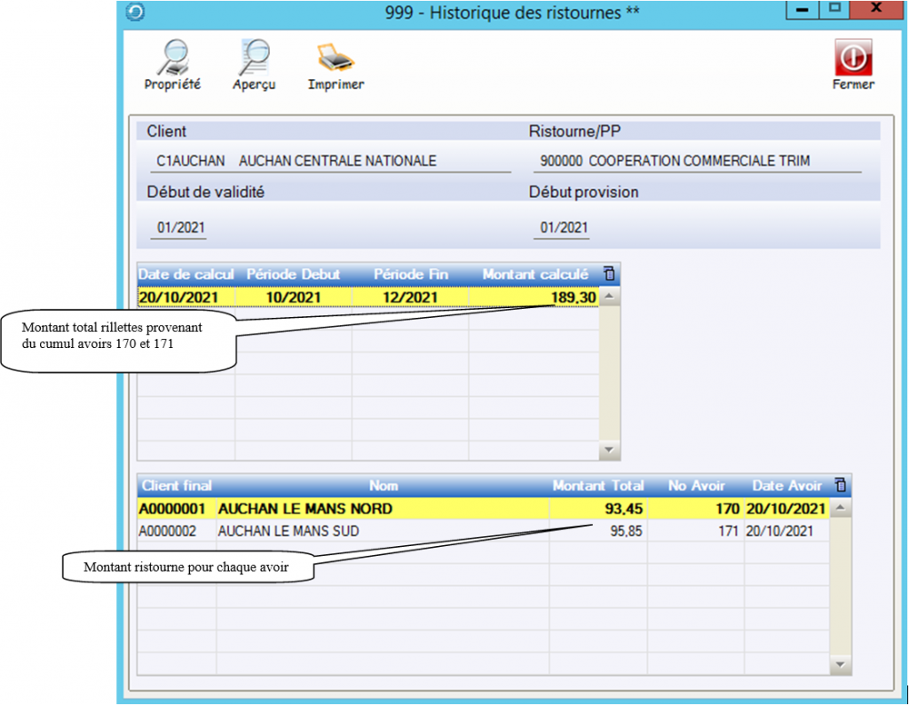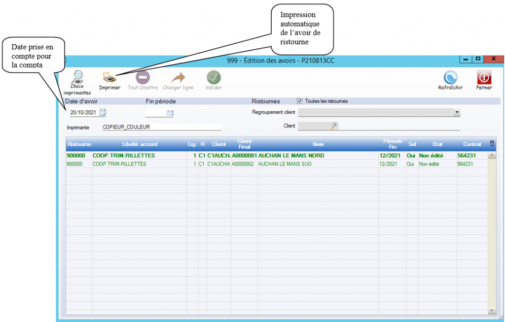 NB : Toutes ces informations s’éditeront sur l’avoir de ristourne