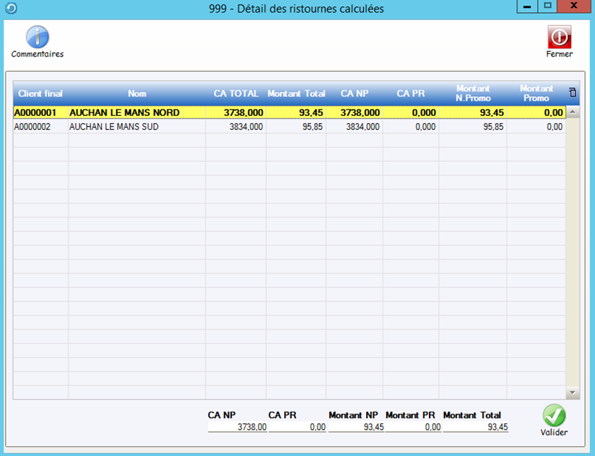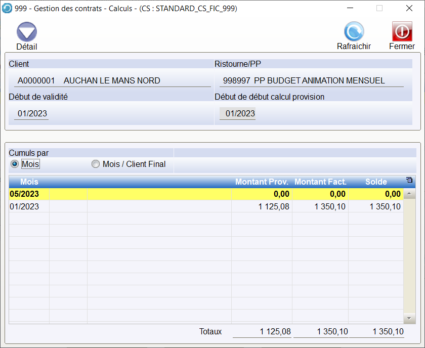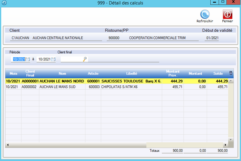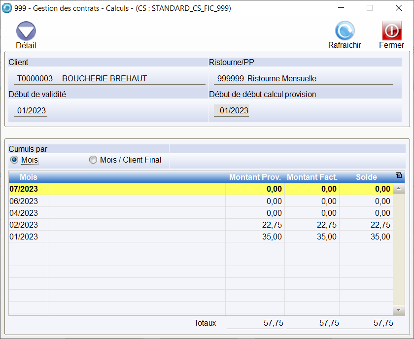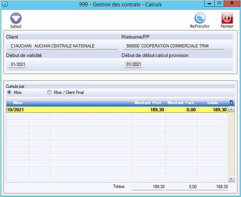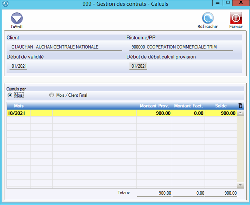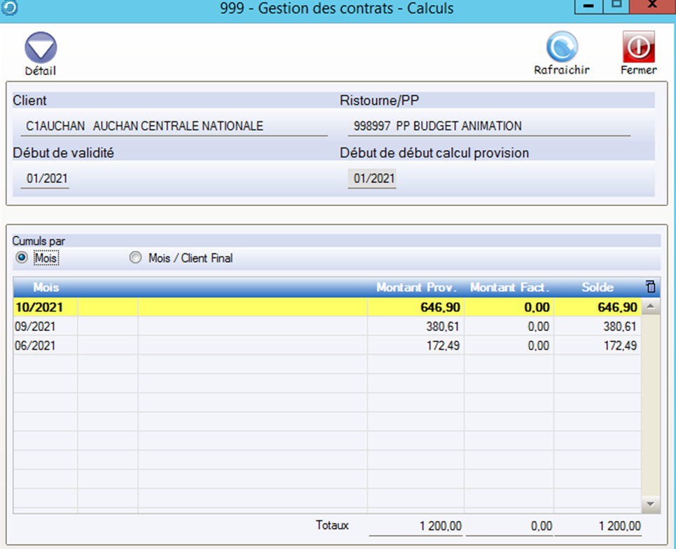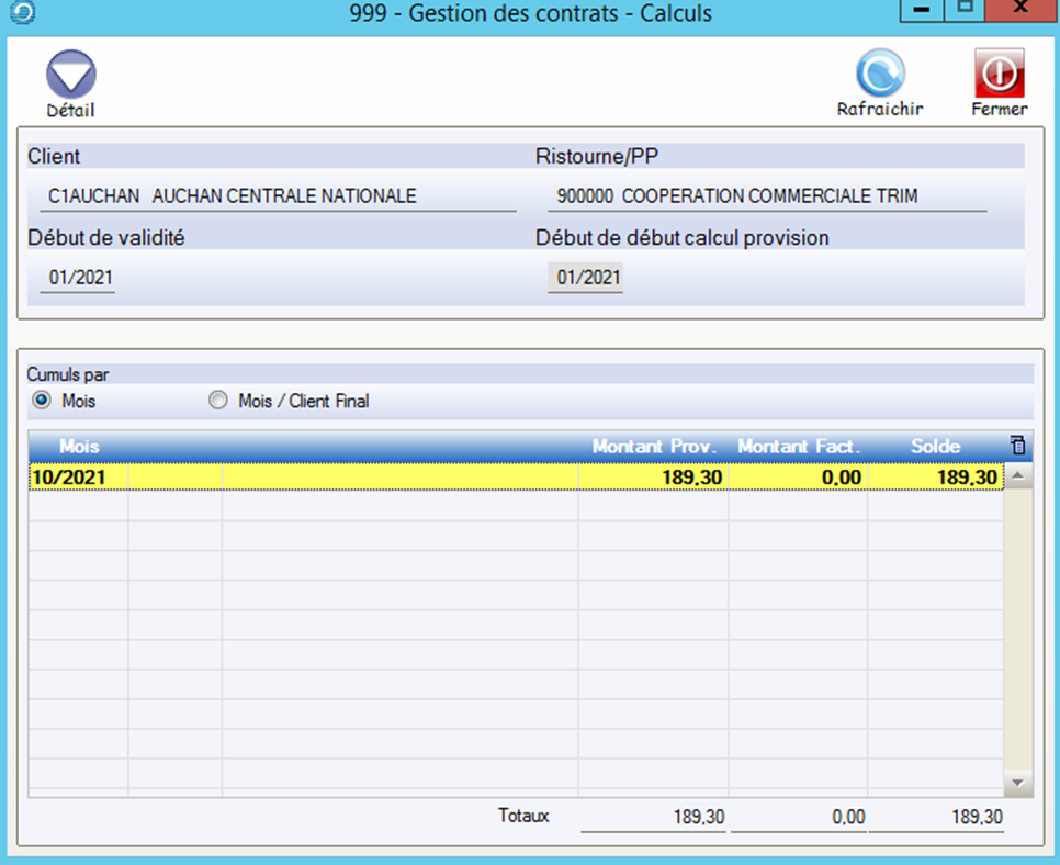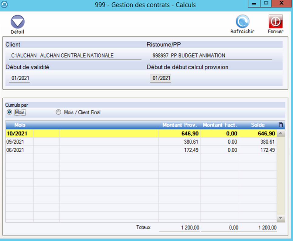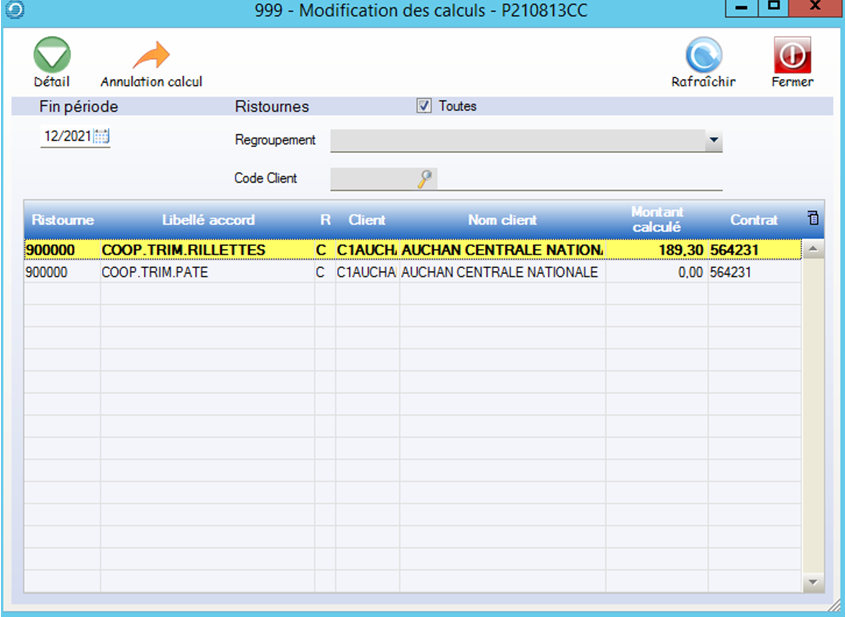 Le bouton Détail permet d’afficher et de modifier les montants calculés pour chaque client.