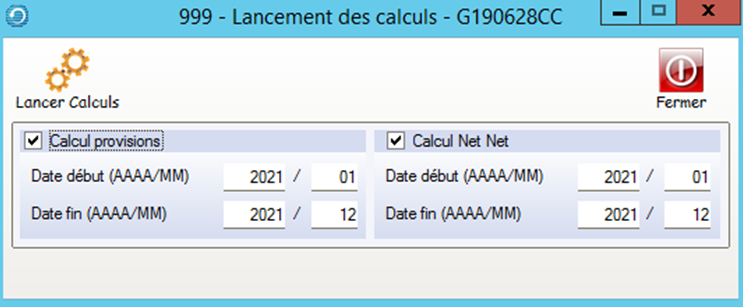 Pour que les calculs soient corrects , il faudra au préalable lancer l’utilitaire de calcul des provisions et Net-Net-Net.