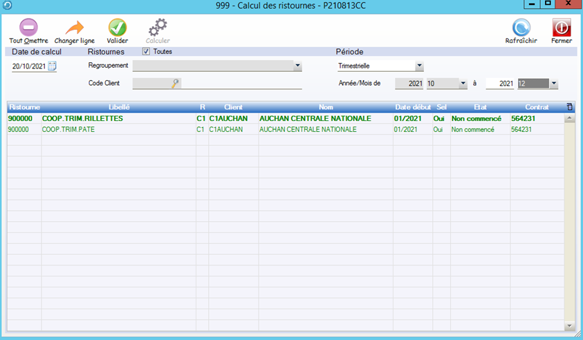 Dans cet exemple, nous allons rechercher les avoirs de ristourne trimestriel à fin 12/2021.