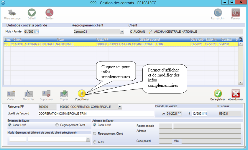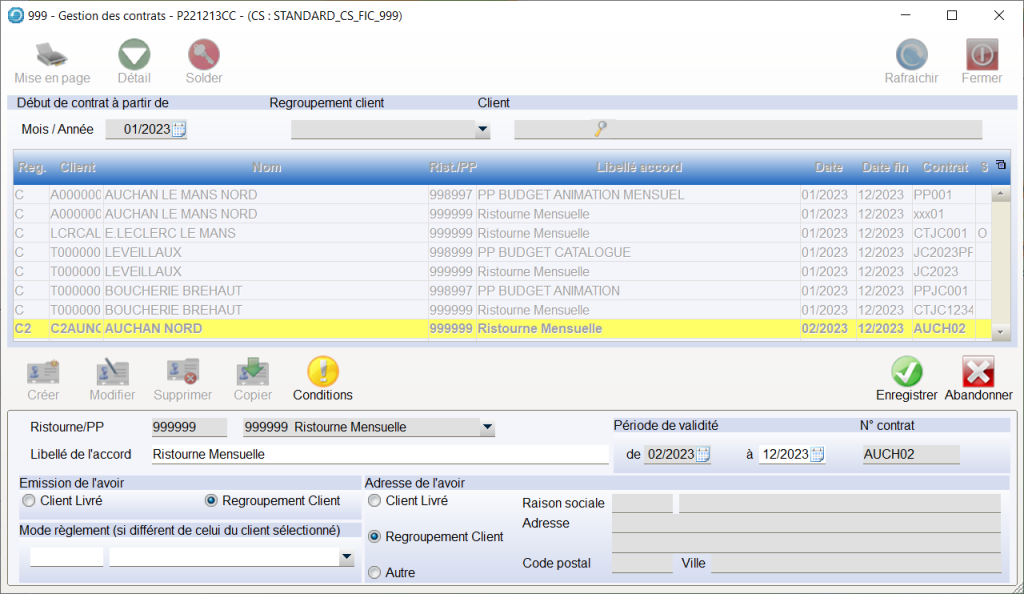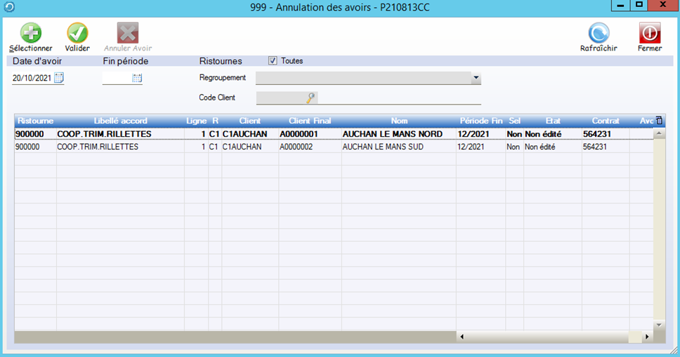 Emission de l’avoir : Client livré : Si le contrat est négocié au niveau d’une centrale nous générerons autant d’avoirs que de clients livrés rattachés à cet accord , sinon l’avoir sera généré au niveau du client livré.