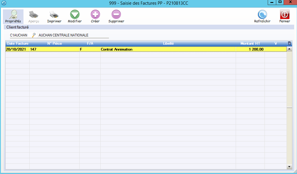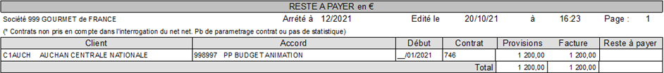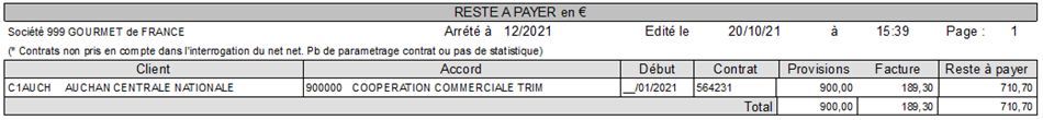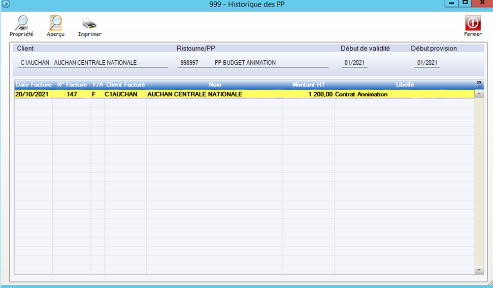Dans cet exemple , nous n’avons pas pour l’instant généré de facture ristourne ni enregistré de factures PP.