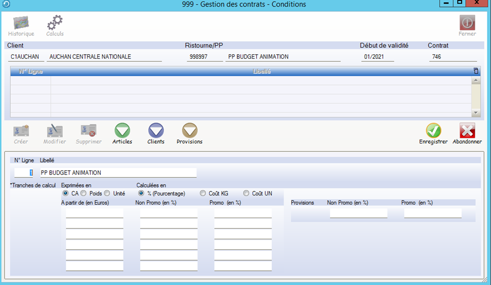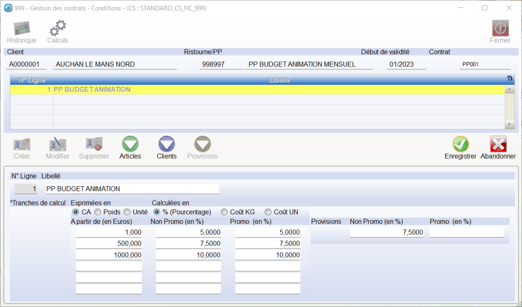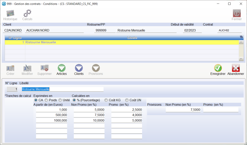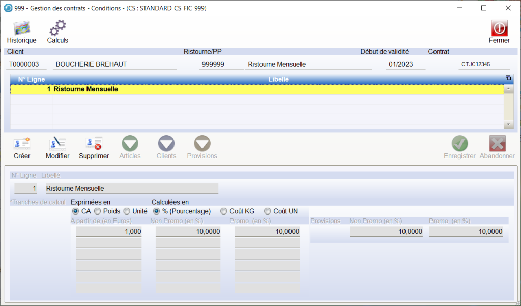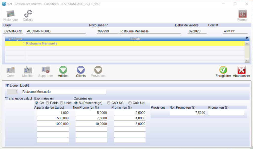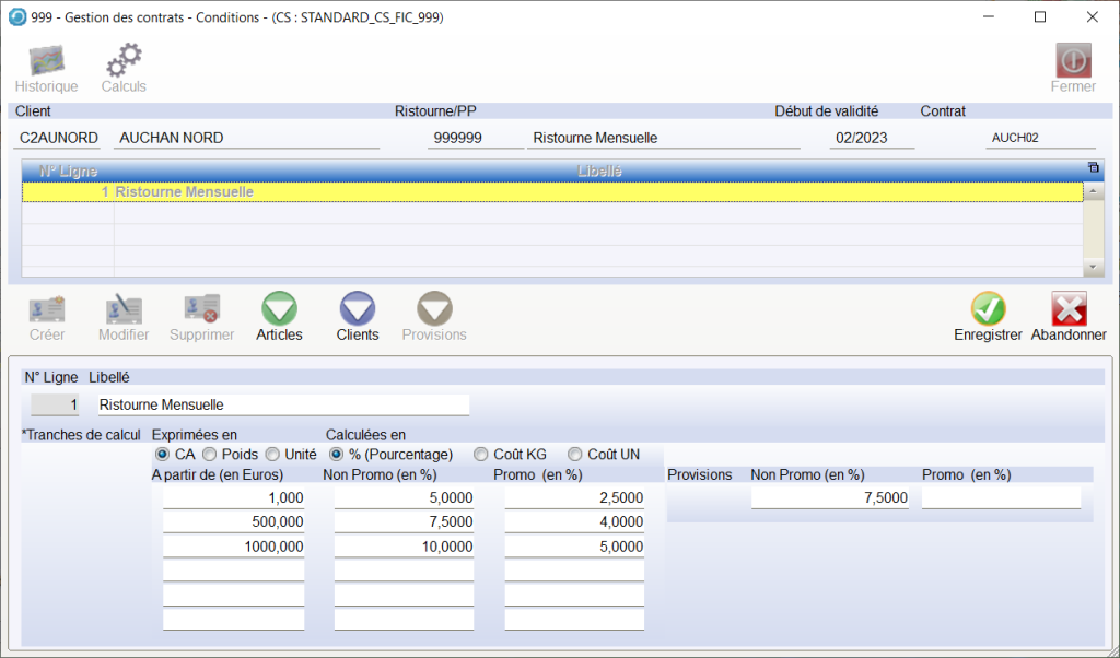 Pour un contrat , vous pouvez saisir plusieurs lignes , cela permet de paramétrer des règles de calcul sans créer des nouveaux contrats.