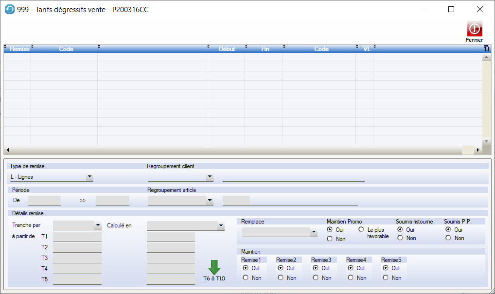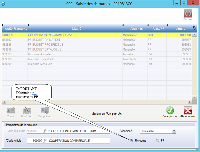 Bien renseigner si ce code est de type : Ristourne ou PP
