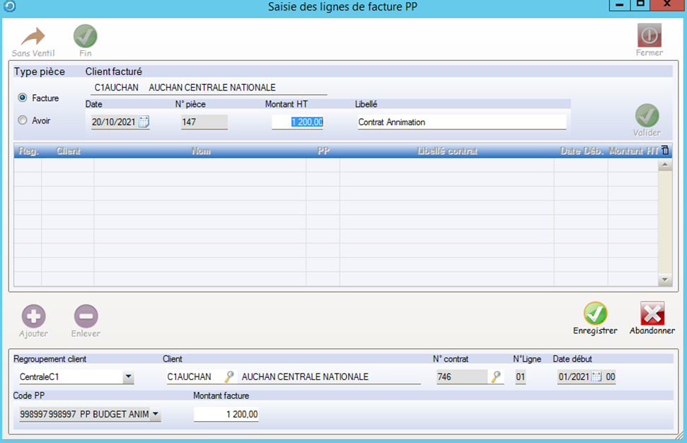 Chaque facture doit être rattachée à un contrat, cela afin de bien imputer les Provisions et le Réel Facturé par contrat et d’éditer une statistique Net-Net-Net correcte.