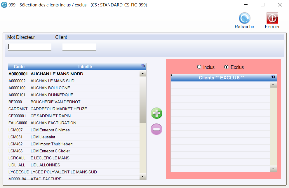 Cas où il faut exclure des clients :