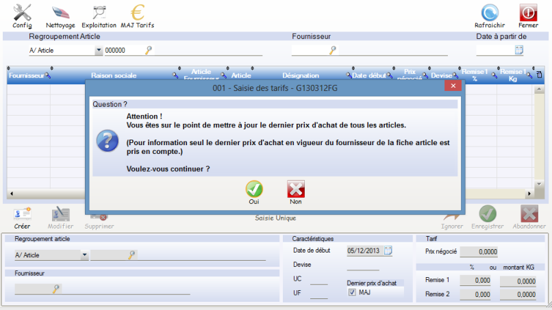 IMPORTANT : Les marges se re-calculent sur les prix en cours et il est impossible ensuite de récupérer les anciens chiffres.