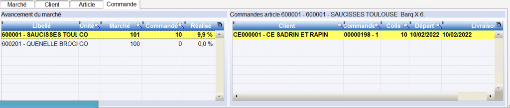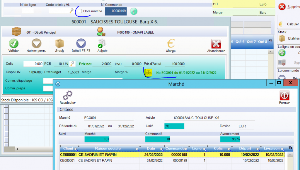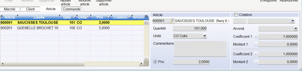 A chaque saisie de commande le logiciel enregistre les commandes en lien avec le marché et cumule les quantités commandées (dans l unité du marché)