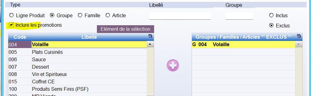 La remise sera appliquée à tous les articles de la commande sauf pour les articles du groupe « volailles ».