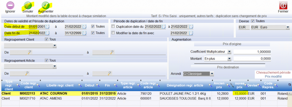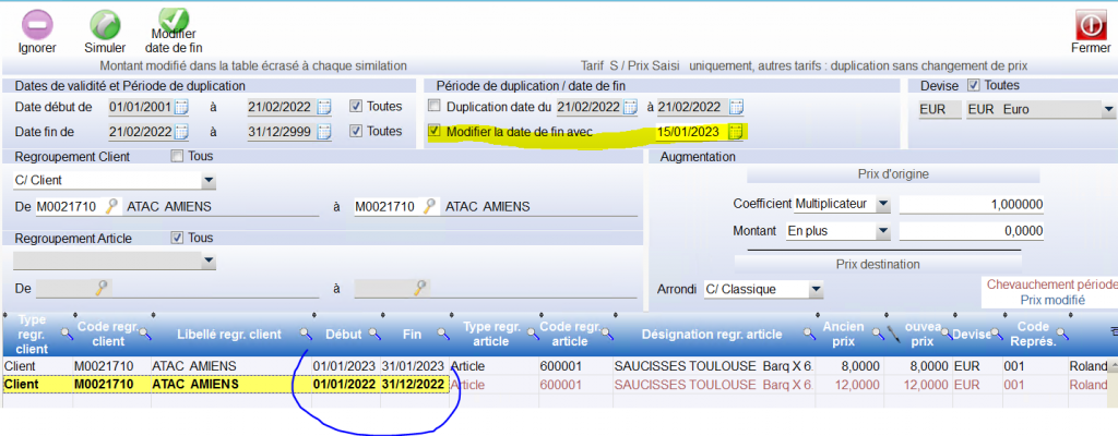 Le paramétrage d un tarif négocié est sur une plage de dates , pour un même binôme client-article les plages de dates ne peuvent pas se chevaucher.