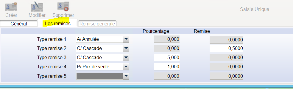 Choisir l onglet « remise générale »