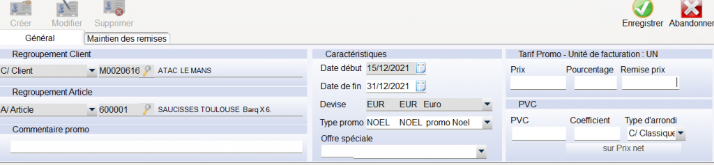 Le paramétrage d une promotion est sur une plage de dates , pour un même binôme client-article les plages de dates ne peuvent pas se chevaucher.