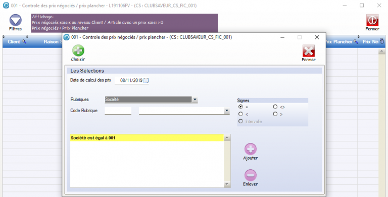 - Affichage uniquement des prix saisis strictement inférieurs au prix plancher
