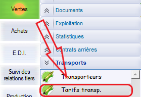 2 chemins d’accès : Ventes > Transports > Tarifs transpo.
