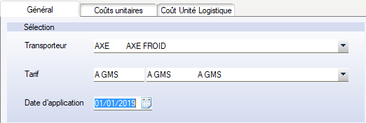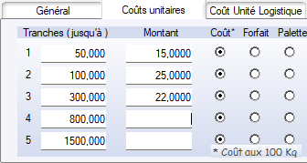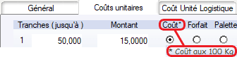 • Cette fenêtre sert à définir la méthode de calcul des coûts de transport pour chaque transporteur.