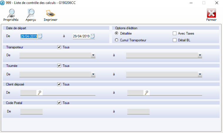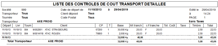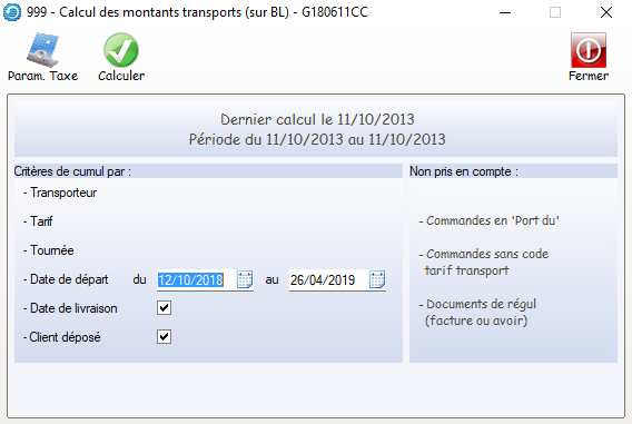 • On peut paramétrer le logiciel pour que le cumul se fasse par transporteur, tournée et départ livraison ou transporteur, tournée, départ.