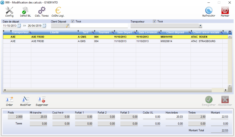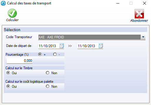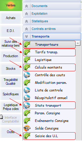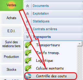 Le chemin d’accès : Ventes > Transports > Calculs montants