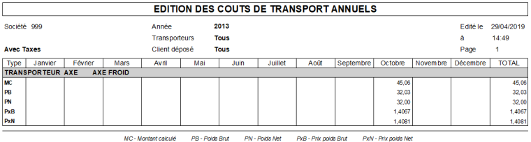 • Les cumuls des poids transportés se font par :