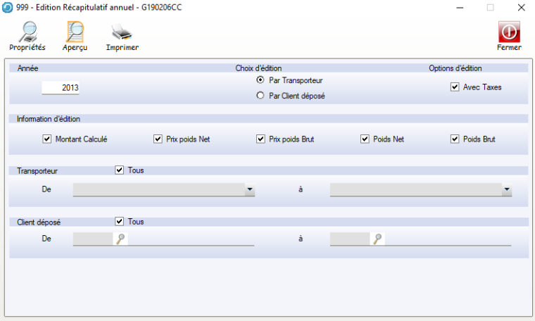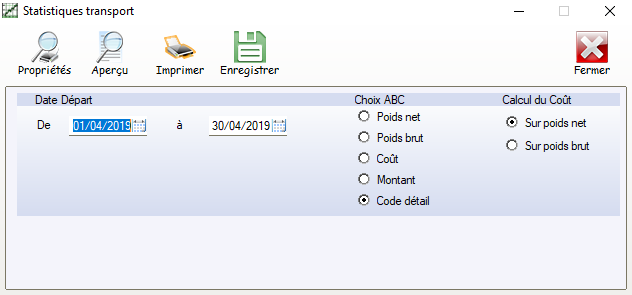 • Cette fonctionnalité permet d’imprimer des statistiques sur des données de transport à l’aide de différentes rubriques et sélection.