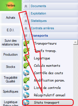 Le chemin d’accès : Ventes > Transports > Stats transport
