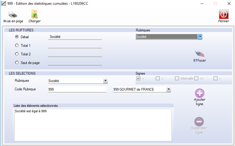 • Cliquer sur le bouton Mise en page pour choisir la période et les tris.