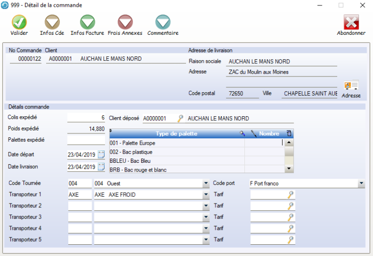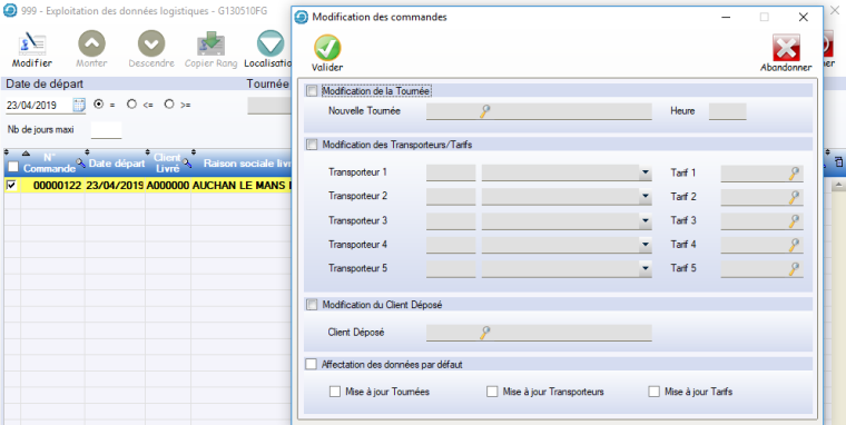 • Permet de contrôler et de modifier les informations logistiques des commandes et de BL :