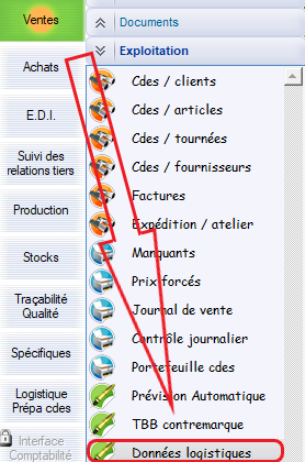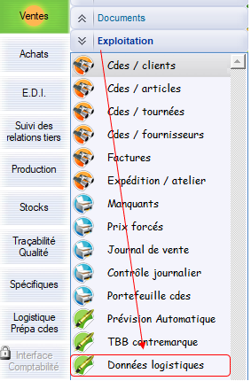 Le chemin d’accès : Ventes > Exploitation > Données logistiques