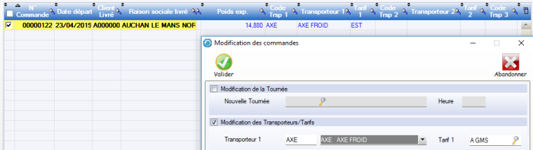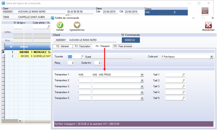 • Par exemple, pour utiliser cette fonctionnalité pour saisir les filières de transport tarif après avoir saisi les commandes.