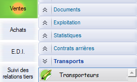 Les chemins d’accès AltaG : Ventes > Transports > Transporteurs