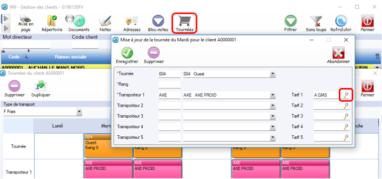 Les chemins d’accès AltaG : Clients > Clients > Tournées