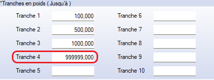 • La dernière tranche doit impérativement se terminer par 999999,000.