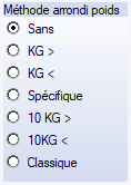 Description des zones Méthode arrondi poids :